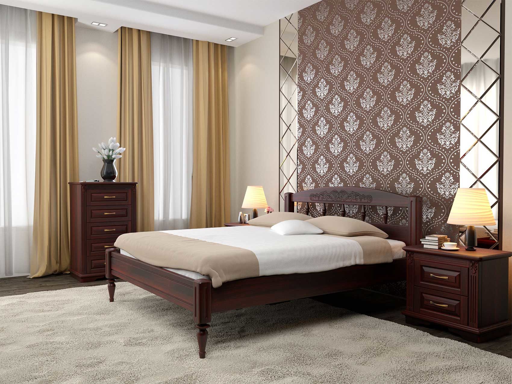 Кровать Флоренция 1 из массива бука с низким изножьем идеально впишется в Ваш интерьер и подчеркнет уют Вашего дома. Кровать из массива ценной породы дерева – бука - гарантия экологической чистоты в Вашем доме. Такие кровати отличаются долговечностью и надежностью. Вся мебель покрывается высококачественным полиуретановым лаком (Испания), что защищает поверхность от царапин и прочих повреждений.