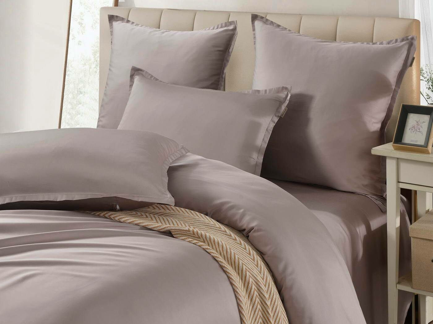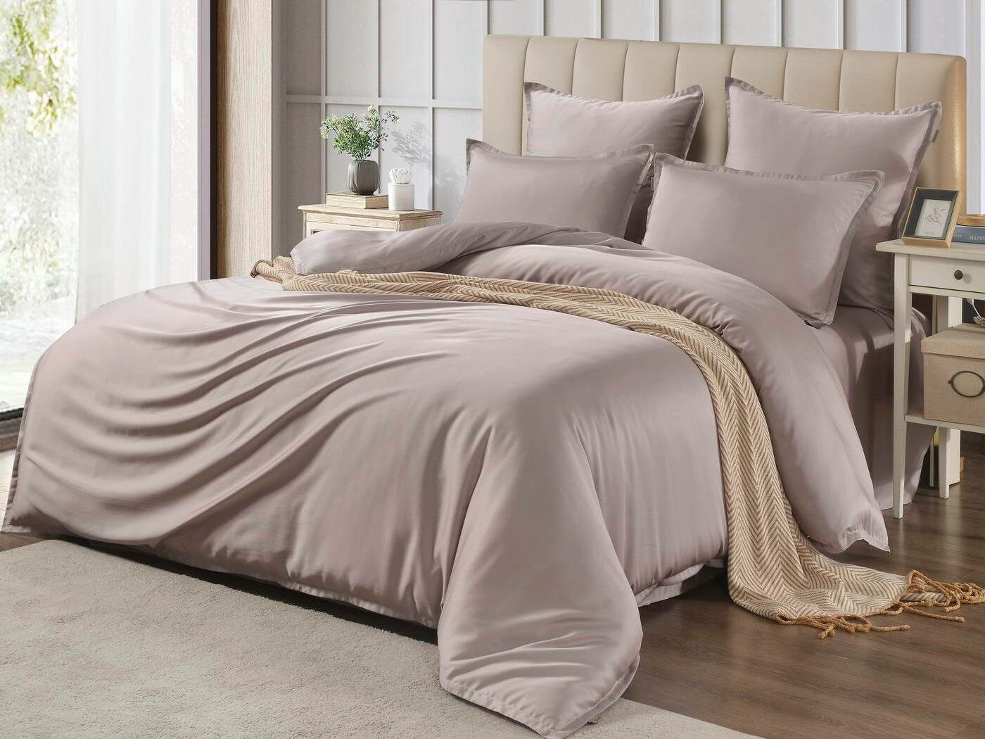 Комплекты постельного белья Ансель: нежность и комфорт каждую ночь Ищете постельное бельё, которое подарит вам незабываемый комфорт и уют? Тогда комплекты постельного белья Ансель из тенселя — идеальный выбор! Тенсель — это натуральная ткань, изготовленная из волокон эвкалипта. Она обладает рядом преимуществ перед хлопковыми тканями: более нежная, шелковистая и приятная на ощупь. Комплекты постельного белья Ансель включают в себя наволочки, простыню и пододеяльник. Они выполнены из 100% тенселя, что гарантирует высокое качество и долговечность. Одно из главных преимуществ тенселя — его способность пропускать воздух и хорошо впитывать и испарять влагу. Это обеспечивает оптимальный микроклимат во время сна, предотвращает появление неприятных запахов и бактерий. Ещё одно важное свойство тенселя — антибактериальный эффект. Это значит, что постельное бельё Ансель не вызывает аллергии и подходит для людей с чувствительной кожей. Уникальное свойство тенселя — климат-контроль. При высокой температуре в помещении ткань обладает лёгким и приятным охлаждающим эффектом, а при низкой создаёт ощущение тепла и комфорта. Комплекты постельного белья Ансель — это идеальный выбор для тех, кто ценит комфорт, качество и натуральность. Они станут отличным дополнением к вашему интерьеру и подарят вам незабываемые ощущения во время сна.