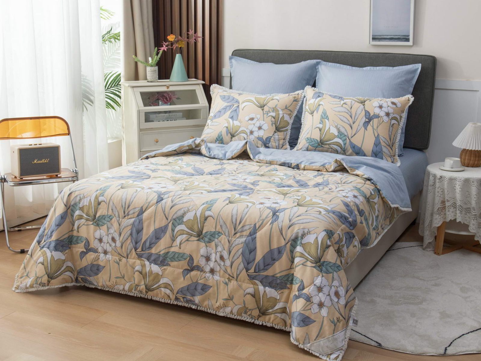 В комплекты комфортеров с одеялом Бернадетт входят наволочки, простыня и легкое всесезонное одеяло. Оцените это современное и очень удобное решение, которое идеально подходит тем, кто не любит возиться с пододеяльниками.
