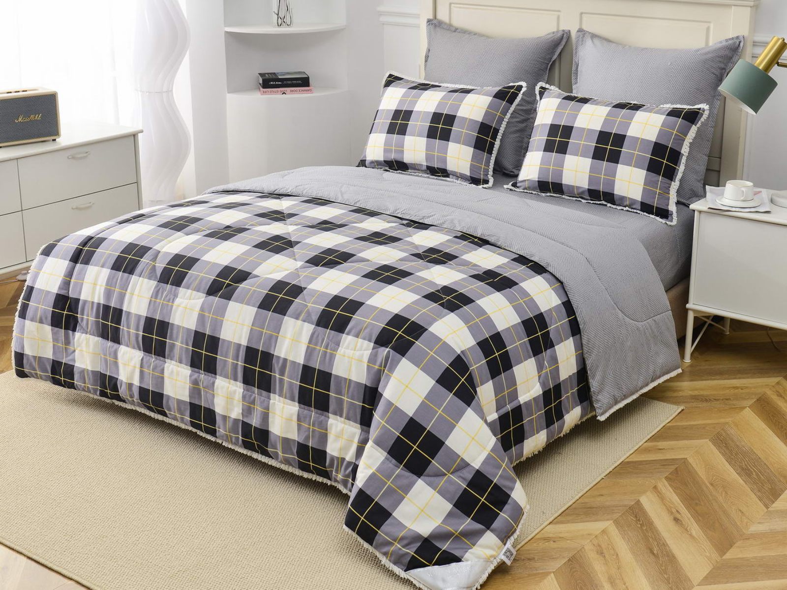 В комплекты комфортеров с одеялом Бернадетт входят наволочки, простыня и легкое всесезонное одеяло. Оцените это современное и очень удобное решение, которое идеально подходит тем, кто не любит возиться с пододеяльниками.