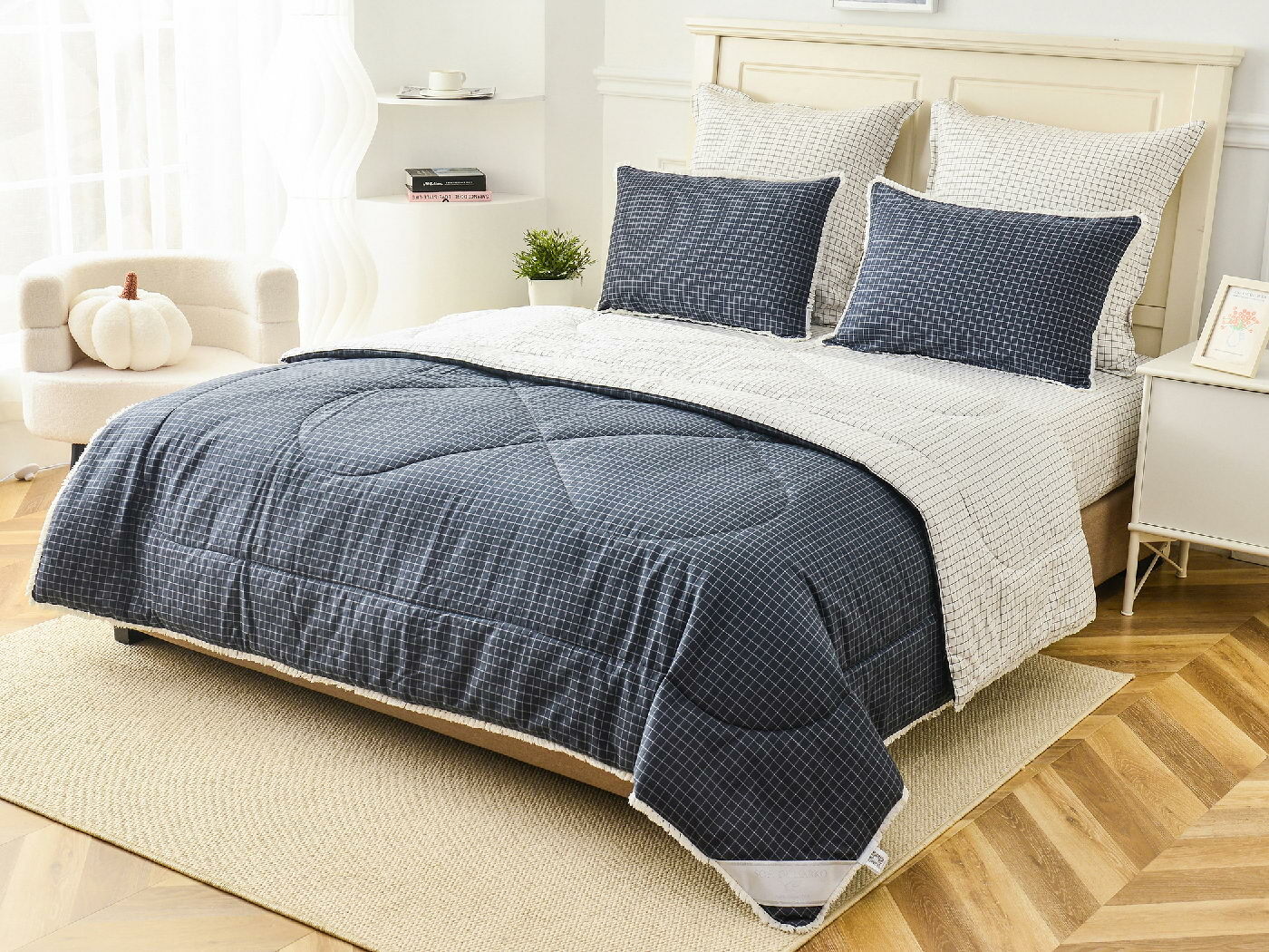 В комплекты комфортеров с одеялом Бернадетт входят наволочки, простыня и легкое всесезонное одеяло. Оцените это современное и очень удобное решение, которое идеально подходит тем, кто не любит возиться с пододеяльниками.