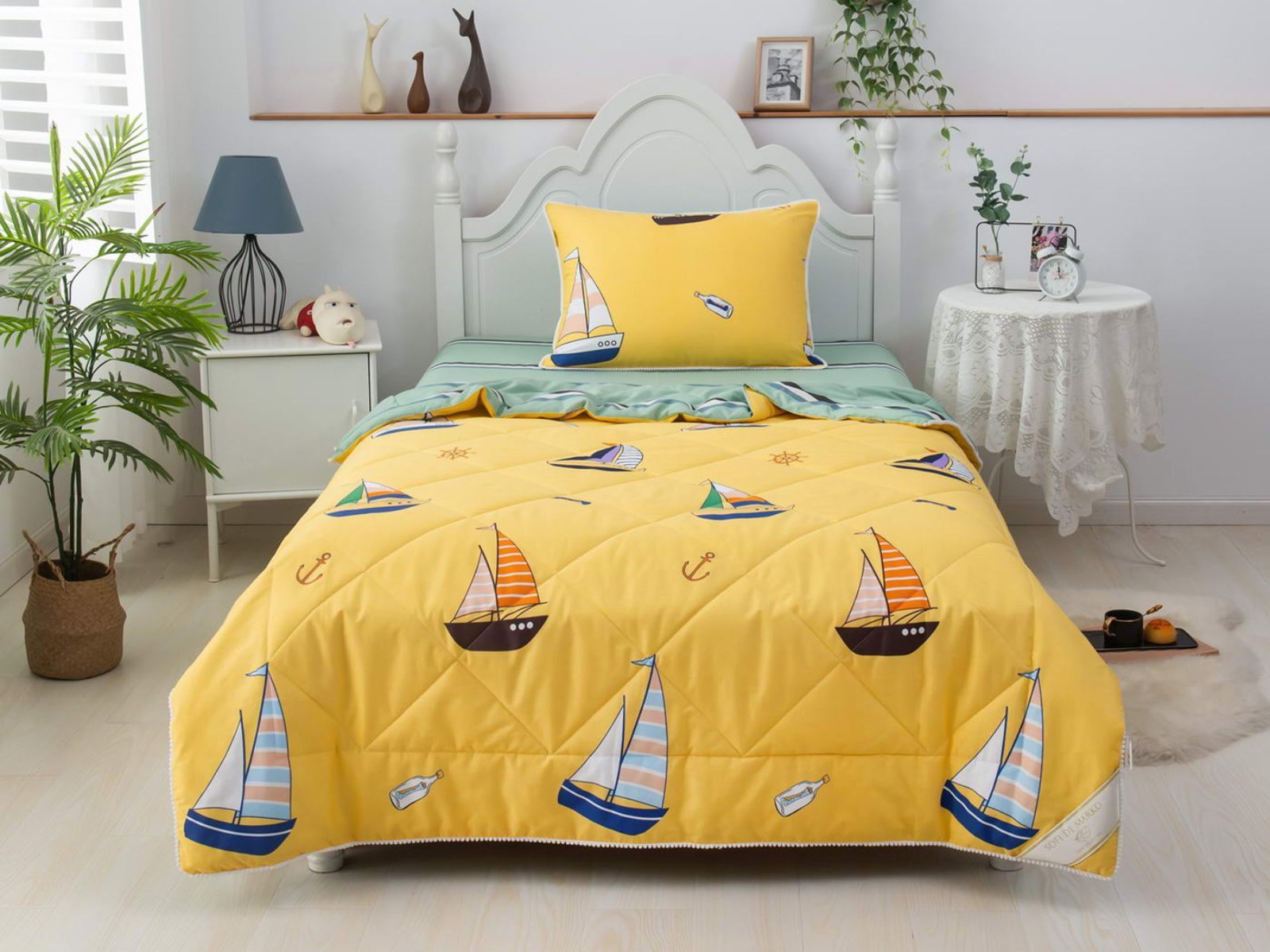 Интернет-магазин СОН.РУ предлагает купить постельное белье с доставкой по Балашихе . Комплект постельного белья Софи де Марко Кораблики (желтый) с одеялом 1,5-спальный размера 1,5-спальный стоит 15 120 ₽ . На товар действует скидка в размере %. Если у вас есть вопросы по гарантии, доставке и оплате, задавайте их менеджерам нашего кол-центра по телефону: 8 495 545-47-33 .