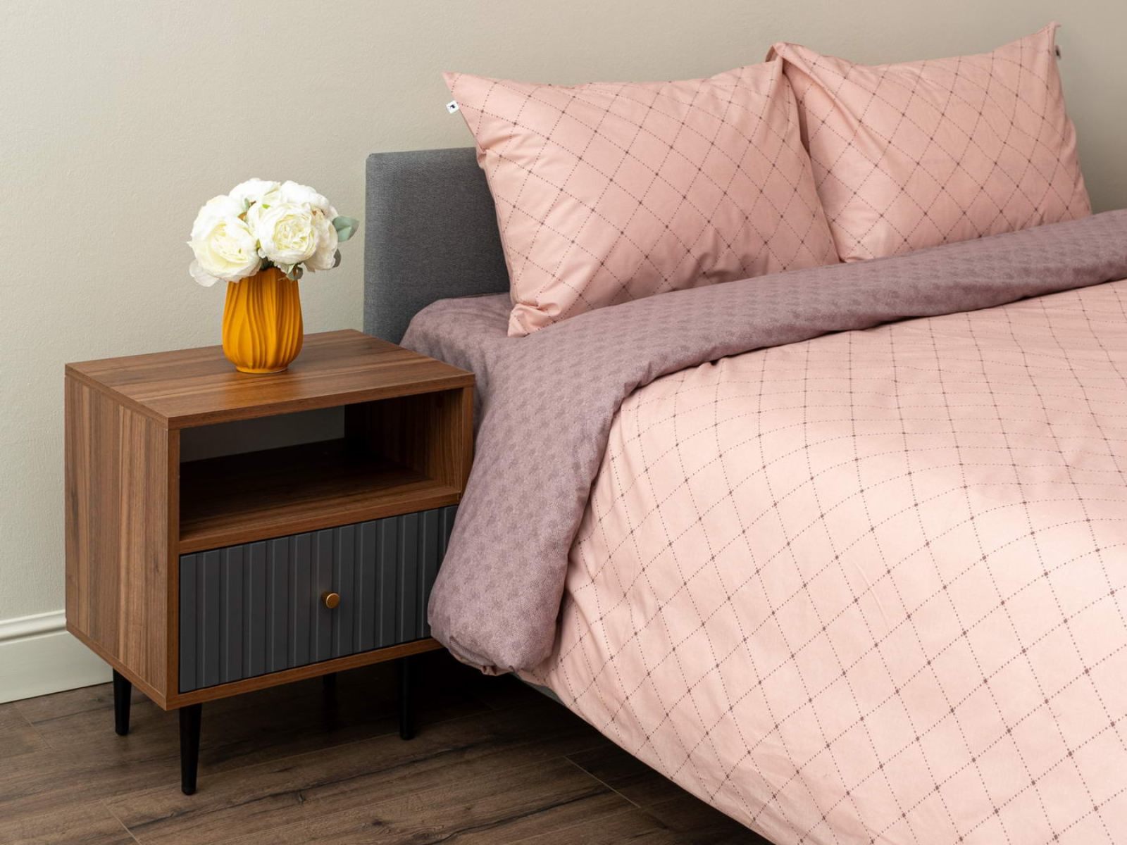 Комплект изготовлен из ранфорса, такая ткань отвечает всем современным стандартам и по уровню комфорта не уступает сатину. Ранфорс долговечен, лёгок и приятен на ощупь.