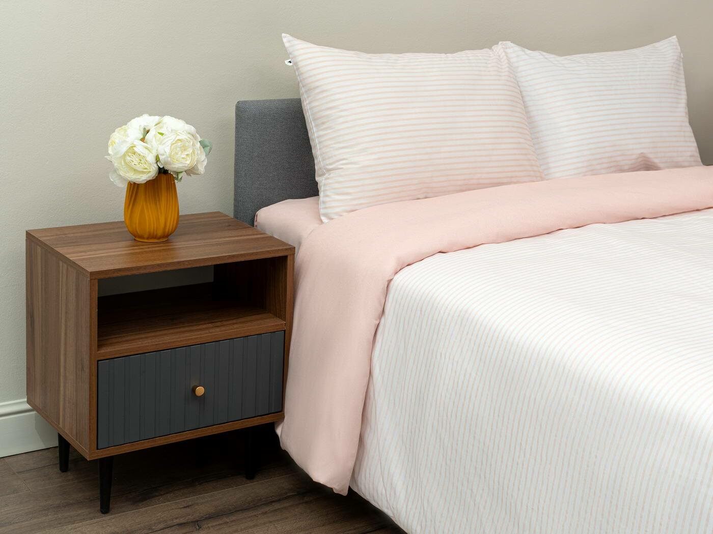 Комплект Мэгги легко стирается в обычной машине в бережном режиме и также легко гладится.