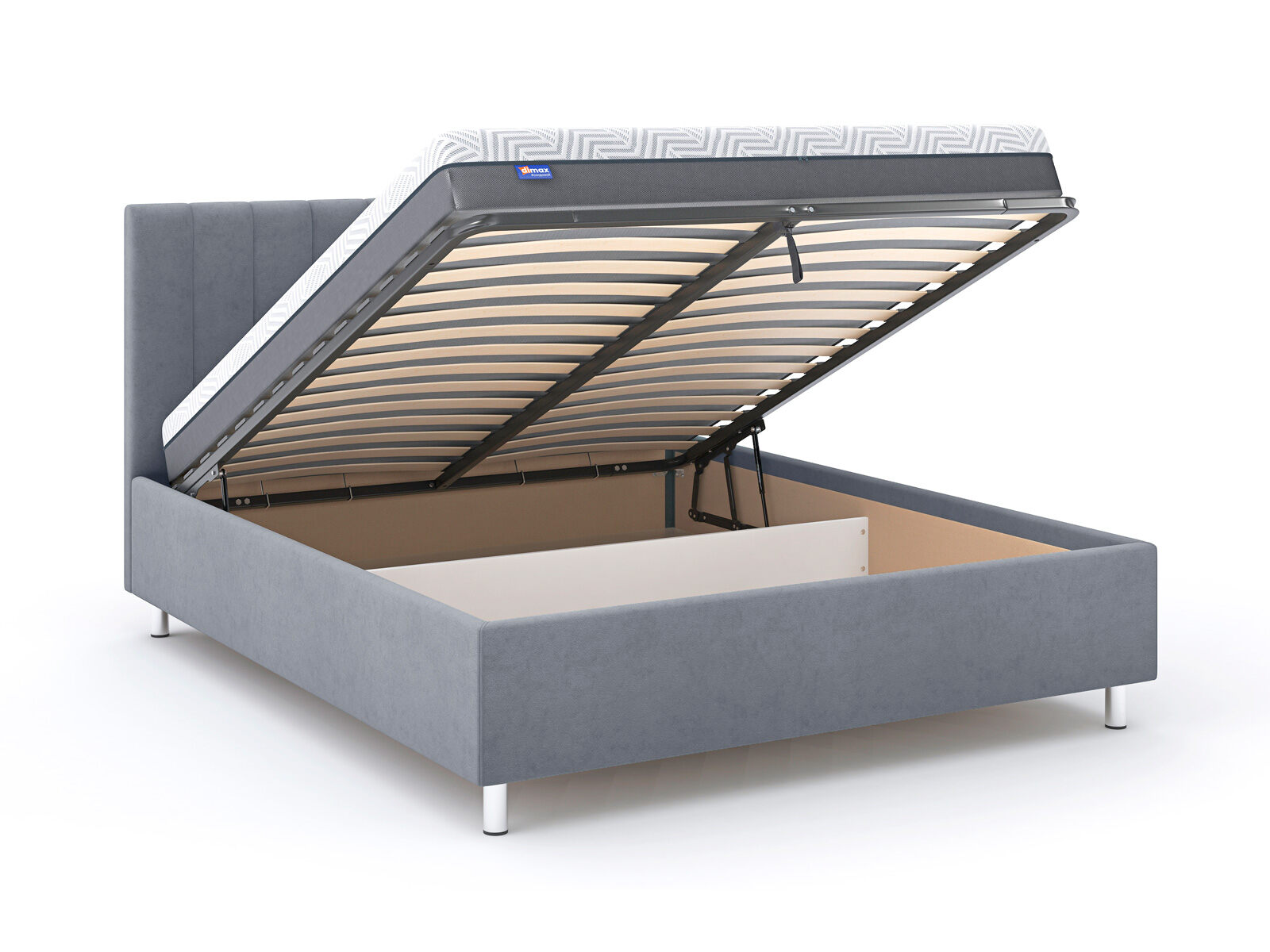 В комплектации с подъемным механизмом кровать имеет вместительный бельевой короб с двумя отделениями.