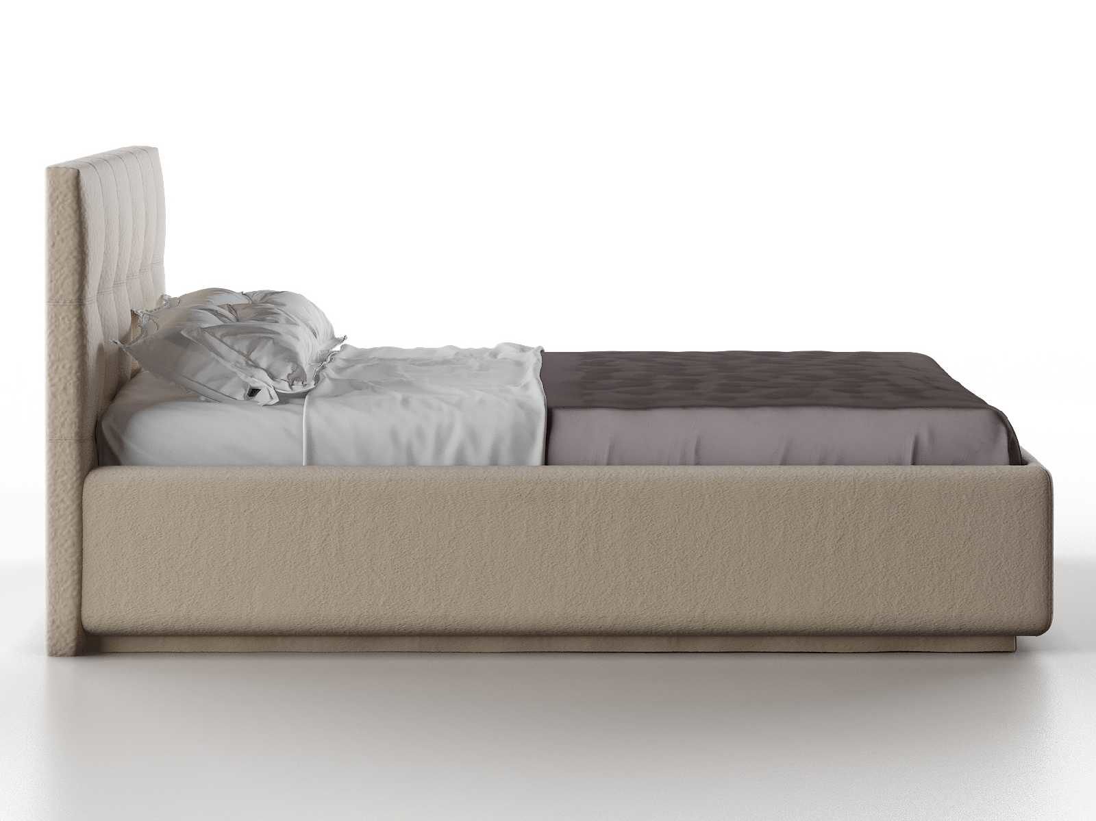 Кровать укомплектована IQ с подъемным механизмом и ящиком для белья без дна (дополнительная платная опция - дно к ящику IQ из HDF (ХДФ). Каркас кровати на цоколе, декоративный чехол на цоколе съёмный. Глубина ящика для белья - 30 см, без ограничения нагрузки на ящик.