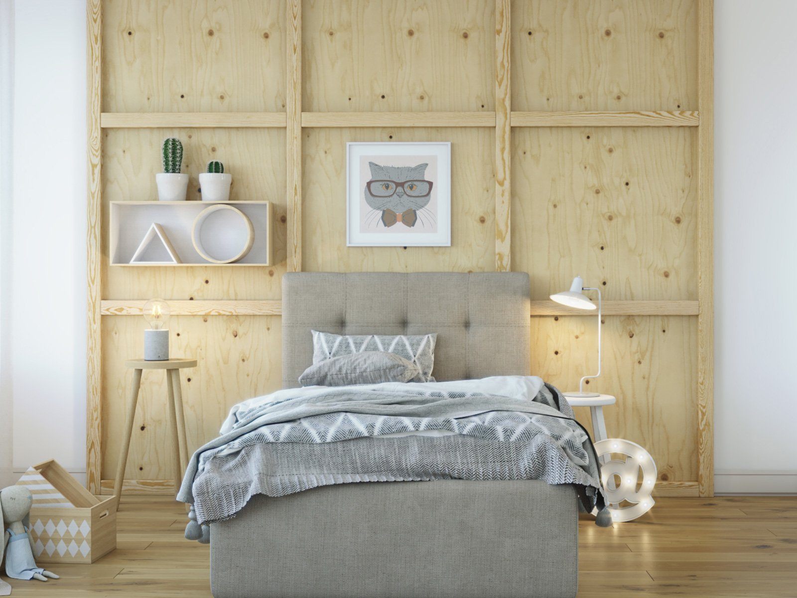Компактная кровать «Сабина» с мягким изголовьем, декорированным стежкой «квадрат», идеальный вариант для интерьеров в современном стиле или малогабаритных квартир.