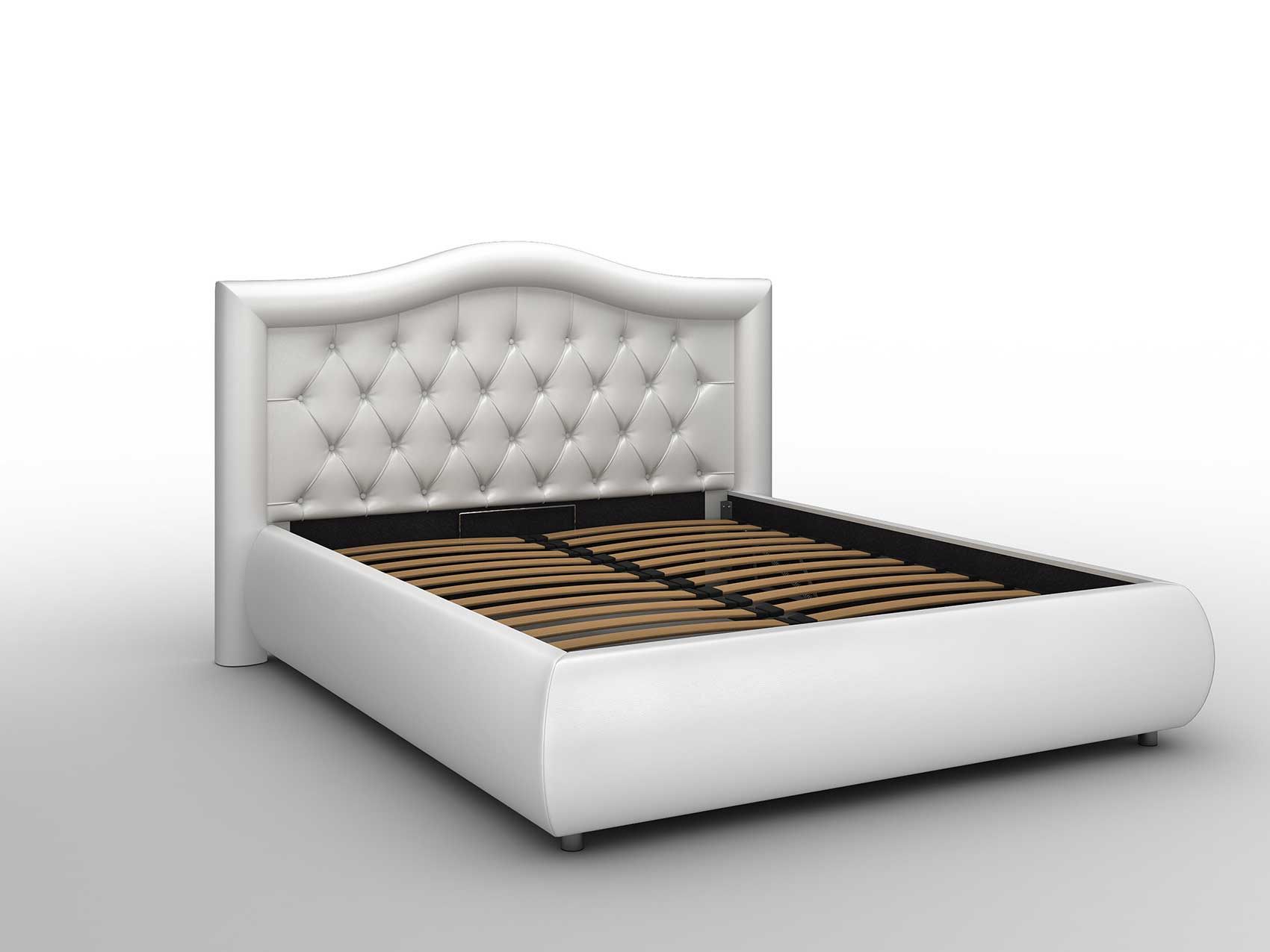 В качестве материала наполнения используется мягкая пена, а каркасом кровати выступает прочный 16 мм ДСП. В роли обивки используется экокожа.
