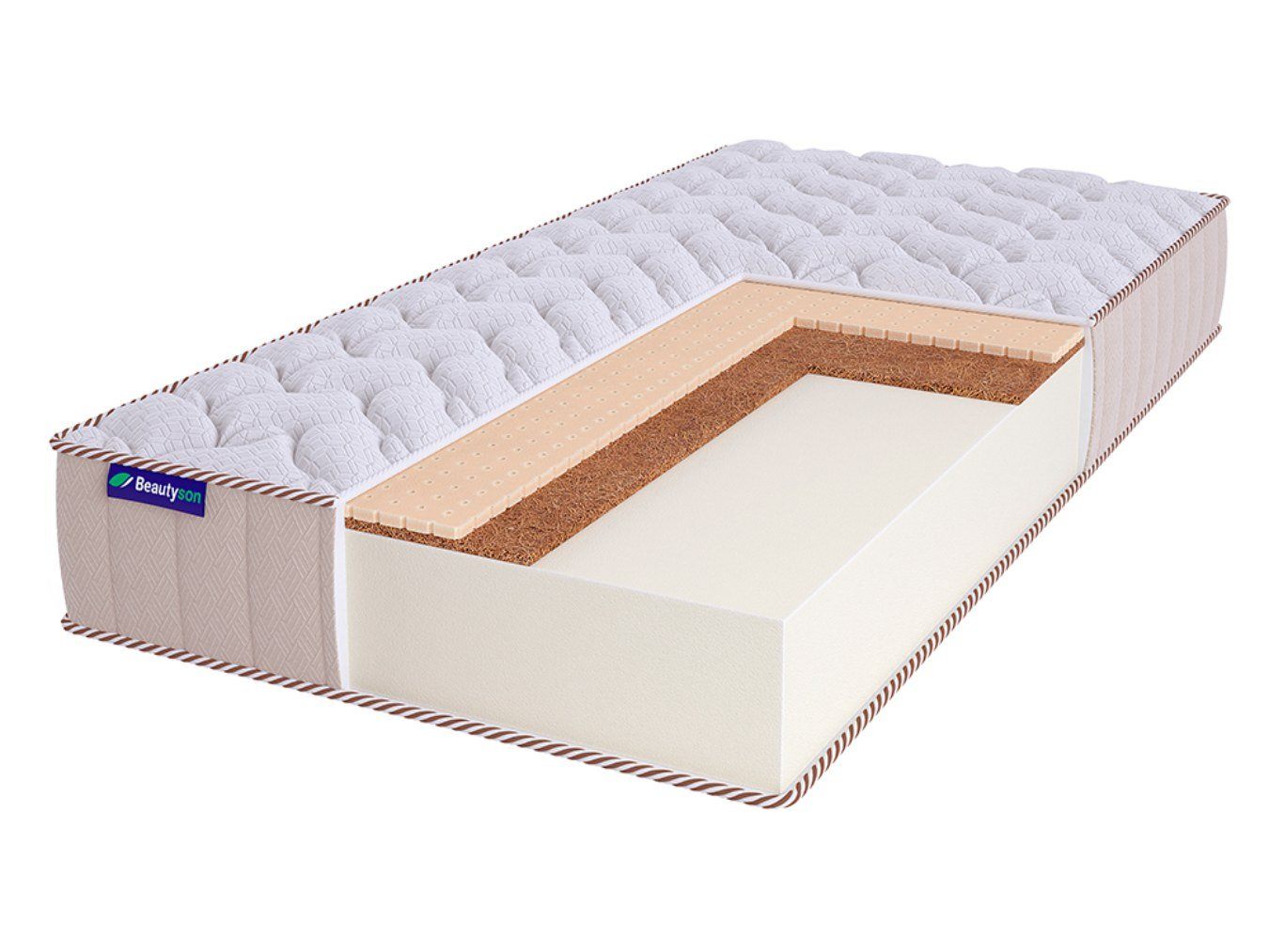 Наполнители – ортопедическая пена AirFoam Hard, кокосовая койра и натуральный латекс. Латекс и кокос отвечают за комфорт, а пена обеспечивает адаптивную упругую поддержку.