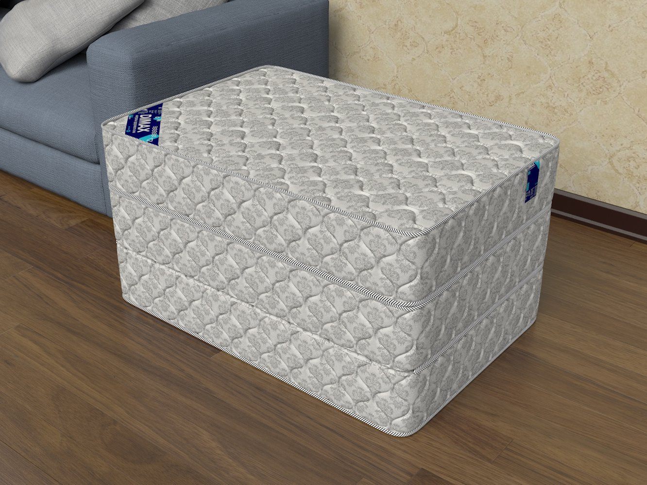 Чехол матраса выполнен из жаккарда. Это разновидность прочного и красивого натурального материала, который не боится ежедневных нагрузок. Покрытие объёмно простёгано на 100 гр синтепоне.