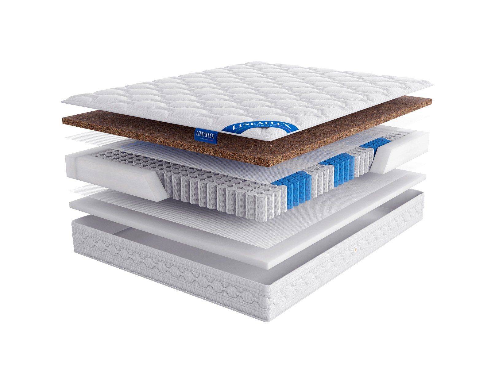 Койра производится из волокон пальмы, поэтому материал относится к 100% натуральным и отвечает за правильную поддержку тела. ERGOFLEX – эластичная искусственная пена, которая отлично адаптируется под линии фигуры, а потому очень комфортна для сна и отдыха.