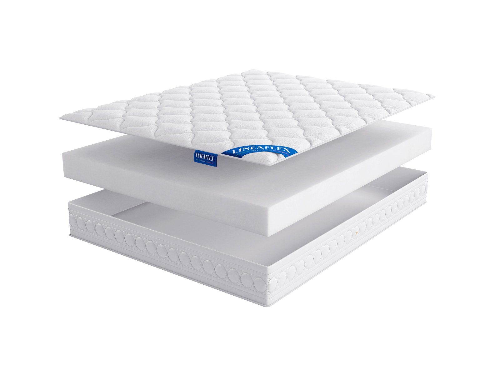 Матрас изготавливается в несъёмном чехле СLASSICO в стильной сдержанной гамме. Здесь превалирует белый оттенок и светло-серый узор по сторонам. Сама обивка шьётся из мягкого и эластичного трикотажа LINEAFLEX, который очень комфортен к телу. В качестве слоя наполнителя для стёжки выступает 300 гр файбер.