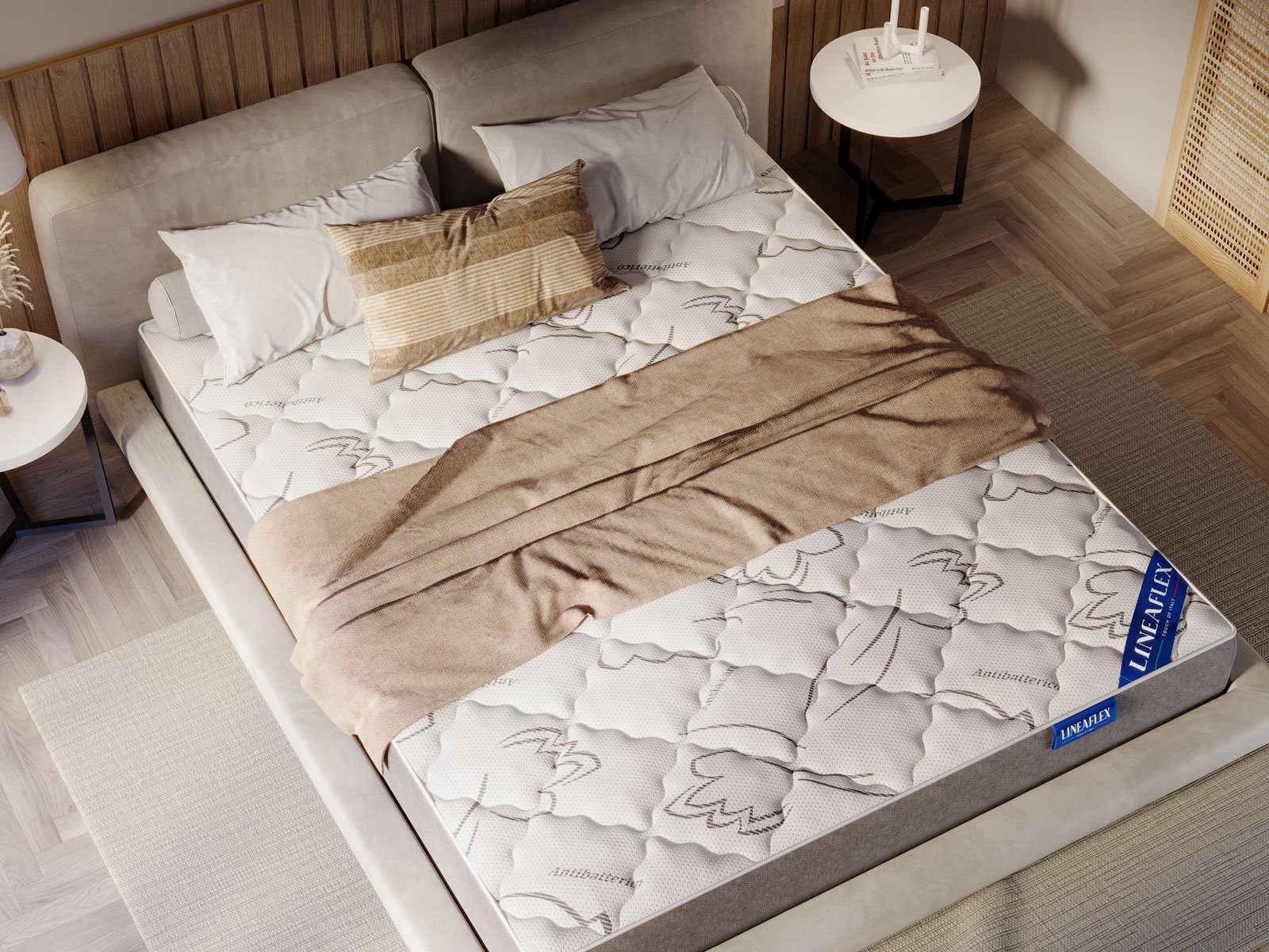 Обивкой матраса служит итальянский трикотаж ANTIBATTERICO с функцией защиты от бактерий. Для наполнения стёжки используются сразу два гипоаллергенных наполнителя: холлофайбер 300гр и пена ERGOFLEX.