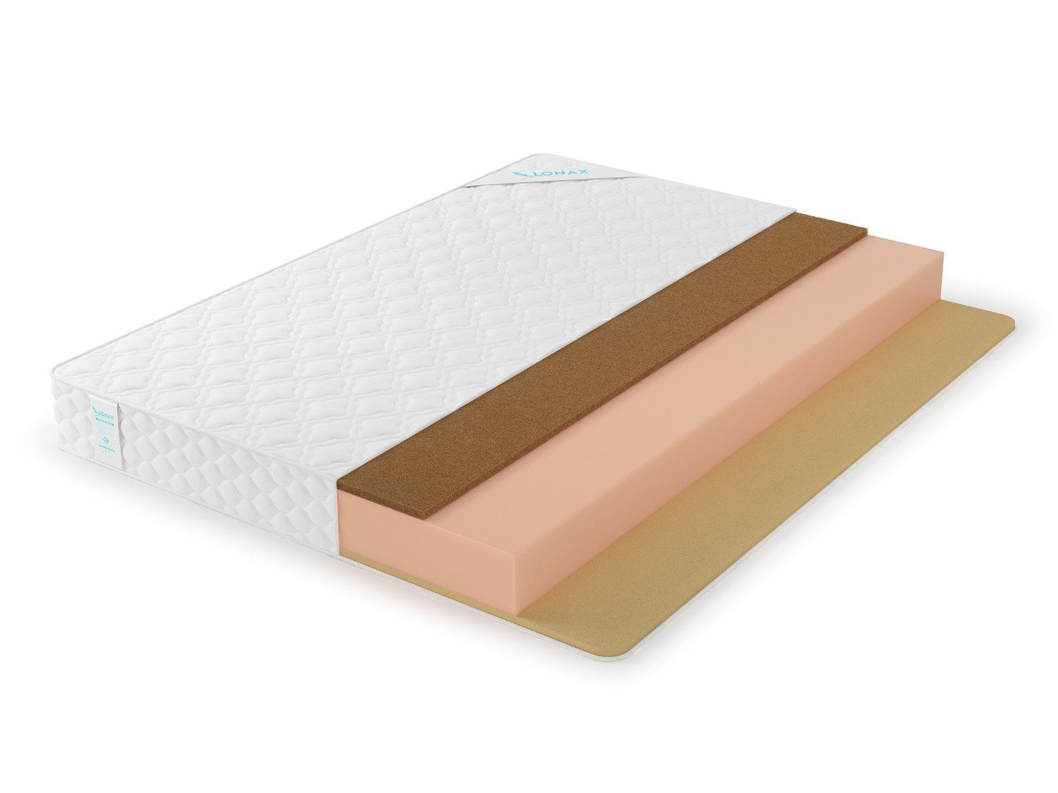 Между слоями кокоса и Мемори скрывается толстый блок ППУ, который работает как пружинный блок. Он отлично поглощает колебания, распределяет нагрузку и эластично подстраивается под изгибы фигуры. ППУ повышает упругость матраса и делает его боле сбалансированным.