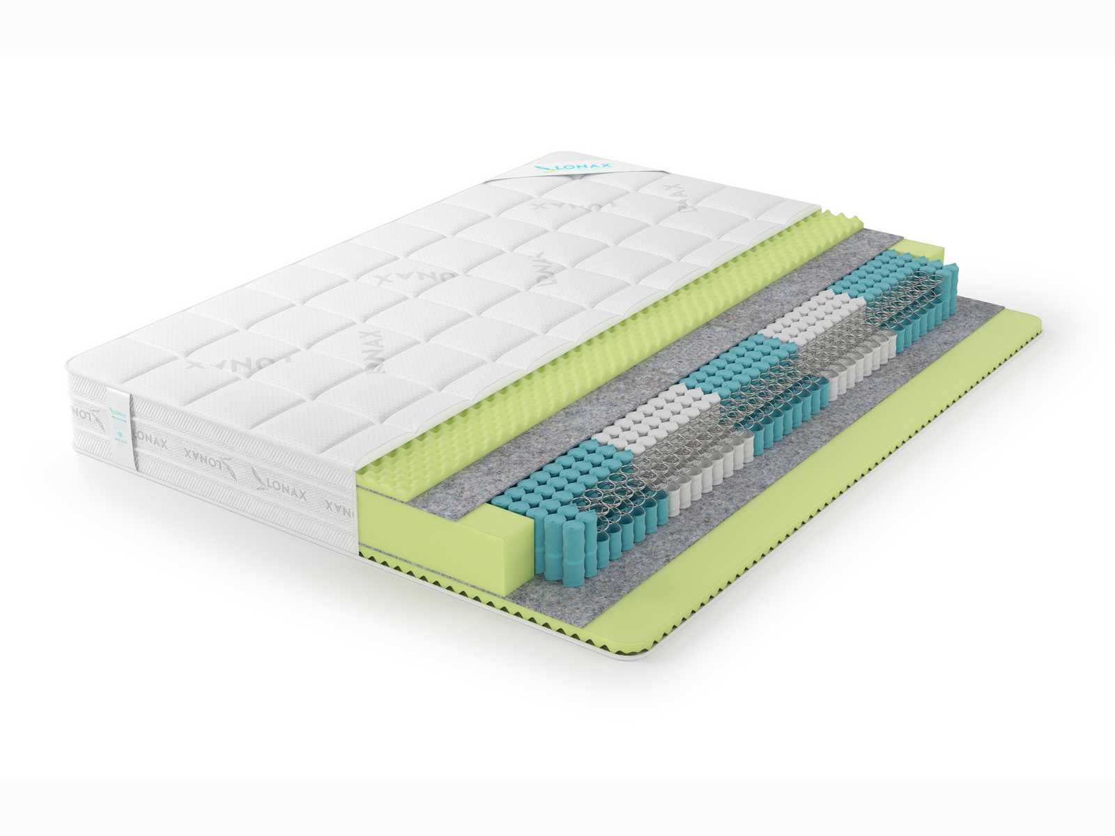 Красивый и объёмный матрас Relax ППУ S1000 5 Zone оснащён примечательных чехлом. Изделие оббито серебристо-белым жаккардом с хлопково-вискозным составом материала, который разлинован аккуратной квадратной стёжкой. Ткань имеет фирменный принт Lonax, который является гарантом оригинальности модели.