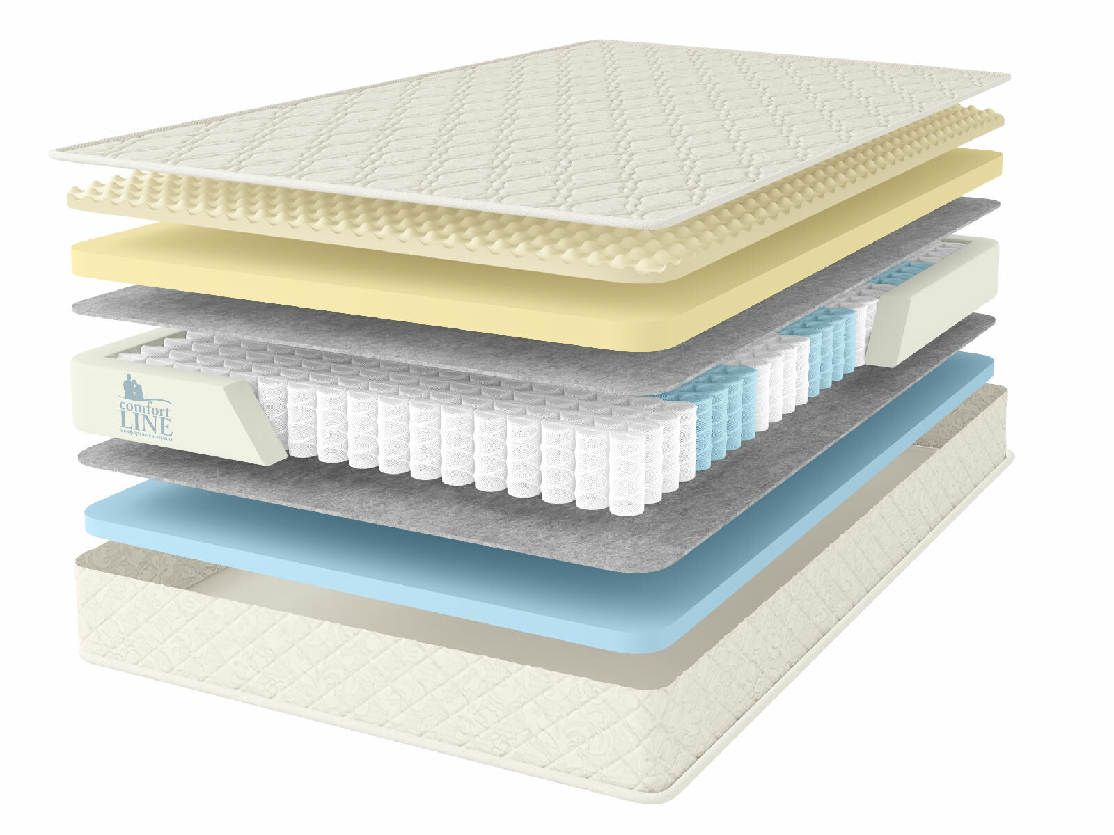 Пружинный матрас в основе которого многозональный независимый пружинный блок 1000 пружин на спальное место обеспечивает ортопедическую поддержку и комфорт во время сна. Независимые пружины подстраиваются под формы человека, потому что каждая пружина находится в отдельном кармашке и обеспечивает равномерное распределение веса.