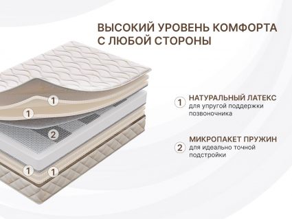 Латексный матрас Микро Софт Люкс с премиальным пружинным блоком. Это мягкая и очень комфортная модель в состав которой входят только лучшие материалы и наполнители. Изделие достаточно высокое, толщина матраса составляет 27 см.