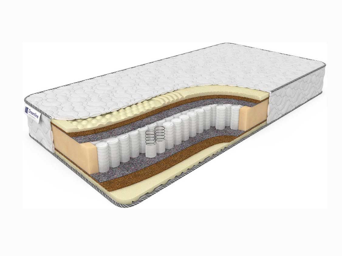 Термовойлок защищает мягкие слои от губительного воздействия пружинного блока. Этот нетканый материал обладает высокой прочностью, не подвержен гниению, а также выдерживает регулярные нагрузки. За счет своих особенностей материал продлевает срок службы матраса. Прочные слои из бикокоса придают дополнительную жесткость матрасу. Своей жесткостью бикокос напоминает кокосовую койру, но в отличии от неё более эластичен. Он экологически чистый, а также хорошо пропускающий воздух. Массажный эффект матрас получает за счет слоев из натурального латекса, которой теперь разделен на 7 зон жесткости. Каждая зона поддерживает отдельные части тела, благодаря чему повышаются ортопедические свойства матраса.