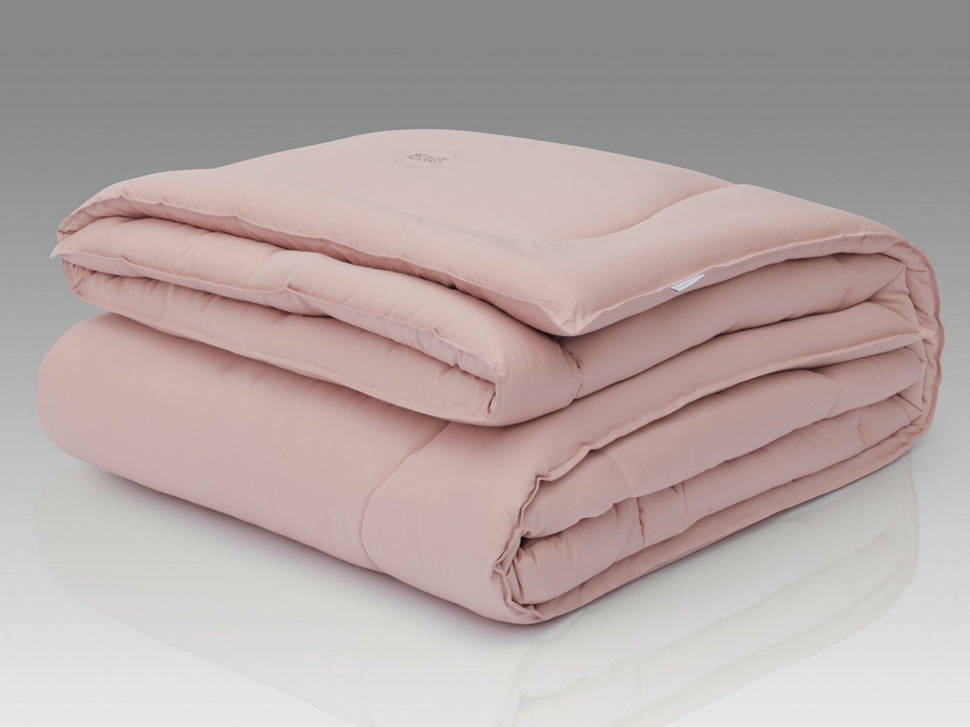 Пошив одеяла с двойной отстрочкой по периметру и термотрасферной печатью в правом нижнем углу, украшенные брендированной фурнитурой.