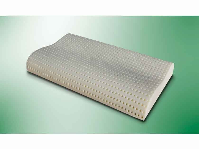 Подушка из 100%-ной натуральной пены, антиаллергенная, антибактериальная. В наволочке из 100%-ого хлопкового трикотажа. Предусмотренные отверстия обеспечивают максимальную вентиляцию.