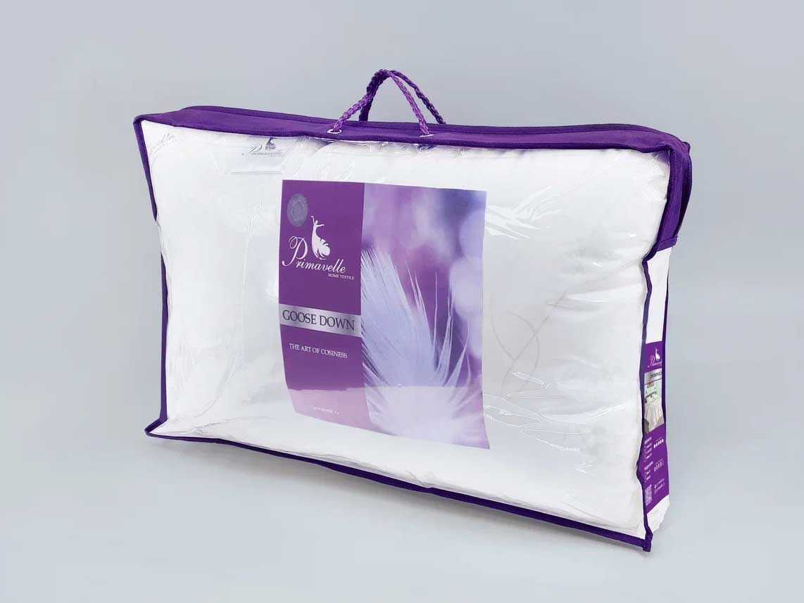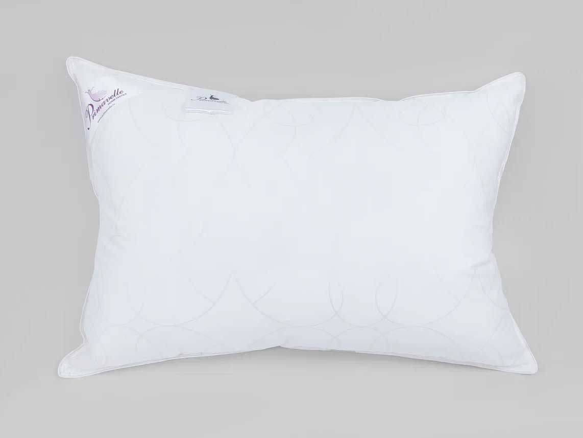 Комбинация ткани и наполнителя прекрасно пропускает воздух и вентилируется, при этом надежно удерживается внутри не допуская миграции пуха наружу. Стильный белый цвет и утонченный вензельный дизайн придают подушке изысканный вид, а двойная отстрочка и кант наделяют атрибутами Premium сегмента.