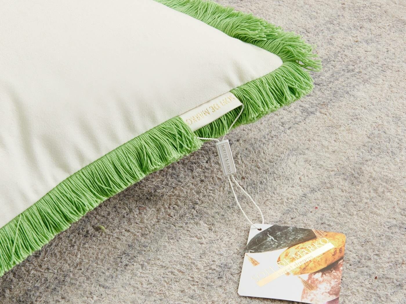 Особенность : с бахромой, потайная молния под цвет вшита в край наволочки.