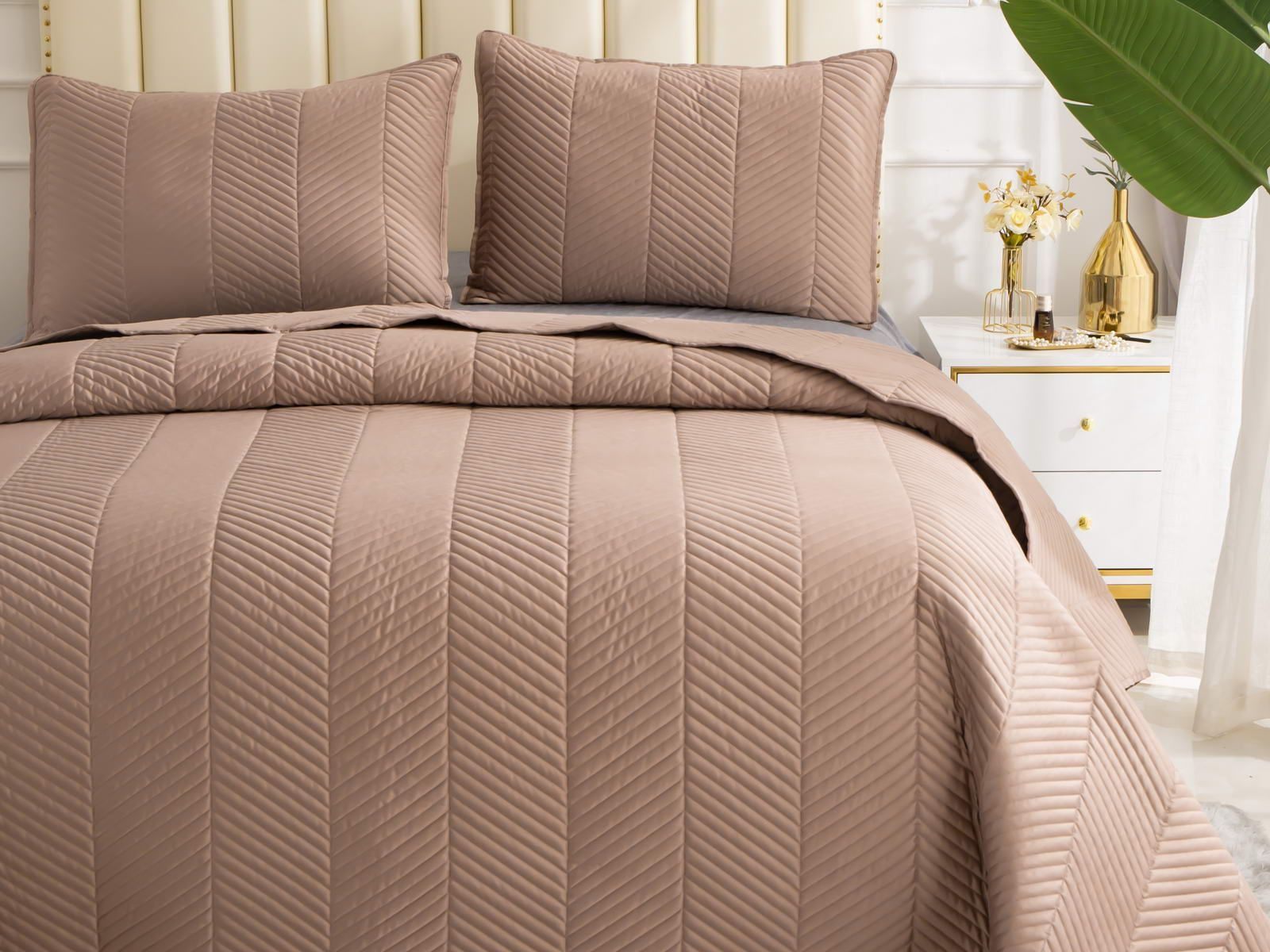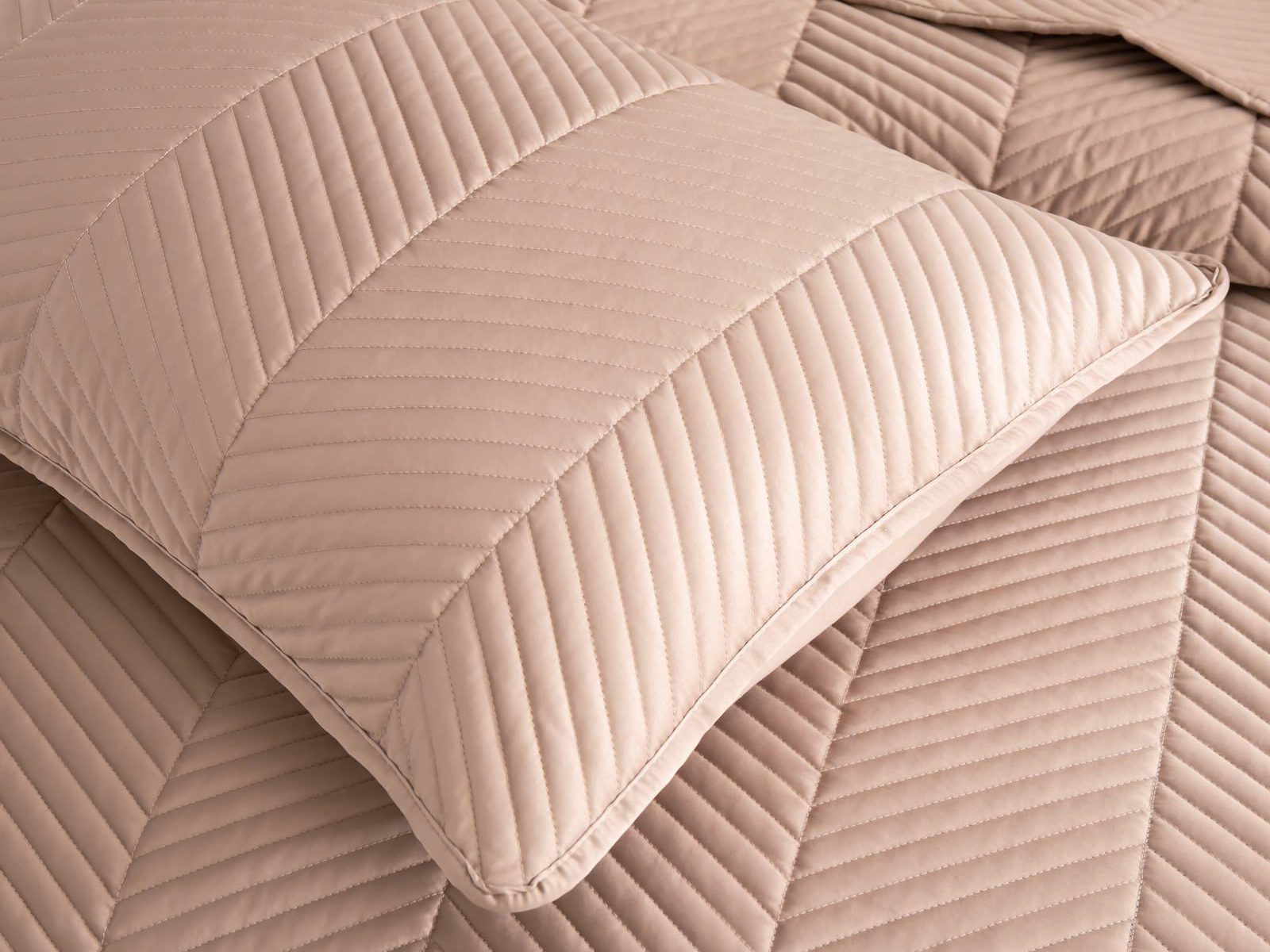 Стёганое дышащее покрывало Адонис на 70% состоит из хлопка и на 30% из вискозы. Ткань изделия гладкая и приятная на ощупь. Декоративный кант и ритмичный «елочный» рисунок, выступающий над поверхностью, придают покрывалу игривый утонченный вид.