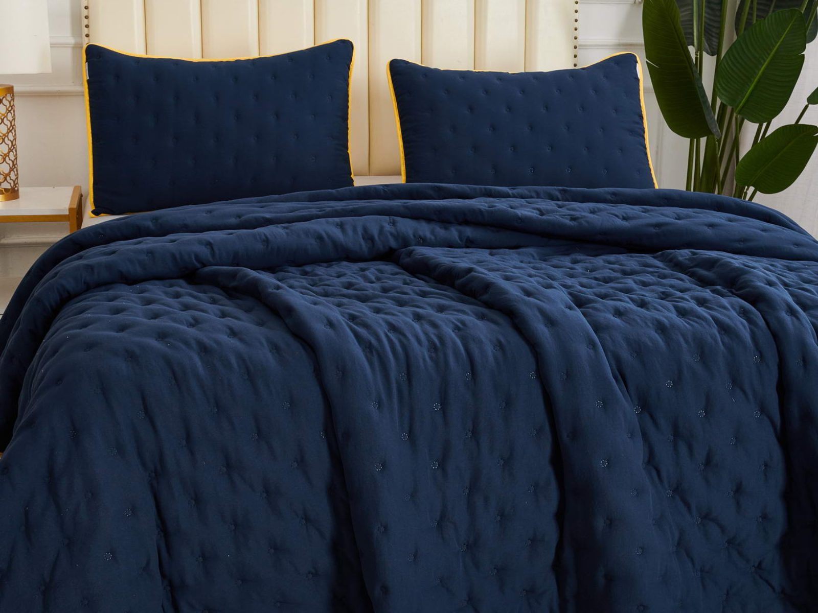 Двусторонние стеганные покрывала Броуди легкие и прочные. В комплект входят покрывало и одна либо две наволочки (50х70 см) из аналогичного материала в зависимости от размера. При желании покрывало можно использовать как легкое одеяло.