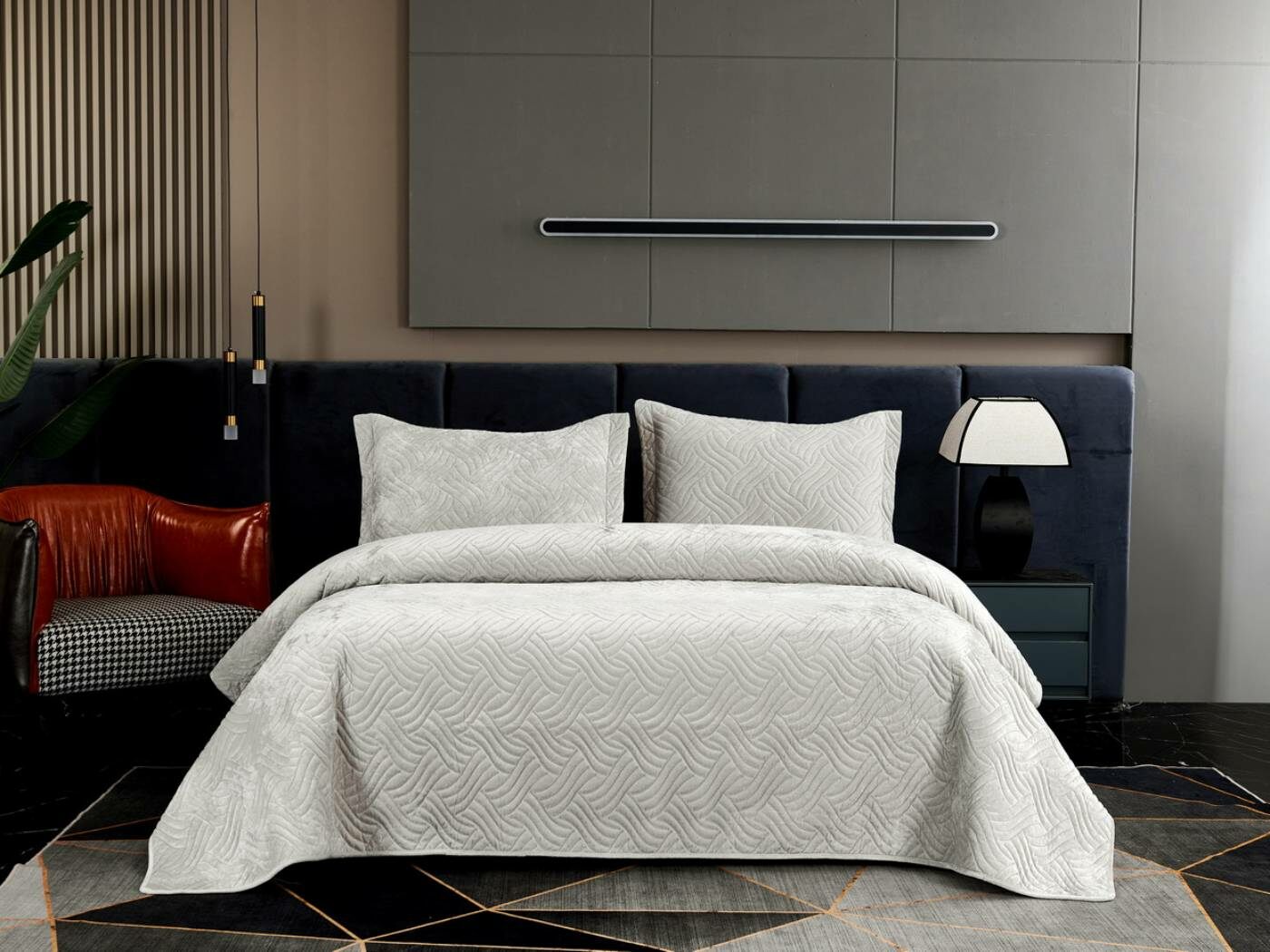 Покрывала «Деварта»: нежность и уют в вашем доме Окунитесь в мир комфорта и изысканности с новой коллекцией мягких бархатных покрывал «Деварта». Эти изделия станут настоящим украшением вашей спальни, добавив ей уюта и элегантности. Покрывала изготовлены из высококачественного бархата, который приятен на ощупь и обладает нежной бархатистой текстурой. Они устойчивы к износу и надолго сохраняют свой привлекательный внешний вид, яркость цвета и мягкость. Благодаря прочной и качественной декоративной стёжке «косичка» наполнитель надёжно зафиксирован внутри изделия. «Деварта» представлена в пяти оттенках: от тёплого бежевого до спокойного серо-голубого. Вы сможете подобрать идеальный вариант для вашего интерьера. Размерный ряд включает два варианта, что позволяет выбрать покрывало, которое идеально подойдёт для вашей кровати или дивана. В комплект входят две наволочки размером 50х70 см. Каждое покрывало аккуратно обшито кантом, а наволочки украшены милыми ушками шириной 5 см. Это придаёт изделиям особый шарм и делает их ещё более привлекательными. Не упустите возможность приобрести эти замечательные покрывала и создать в своём доме атмосферу тепла и уюта. «Деварта» подарит вам не только эстетическое наслаждение, но и незабываемые ощущения при каждом прикосновении.