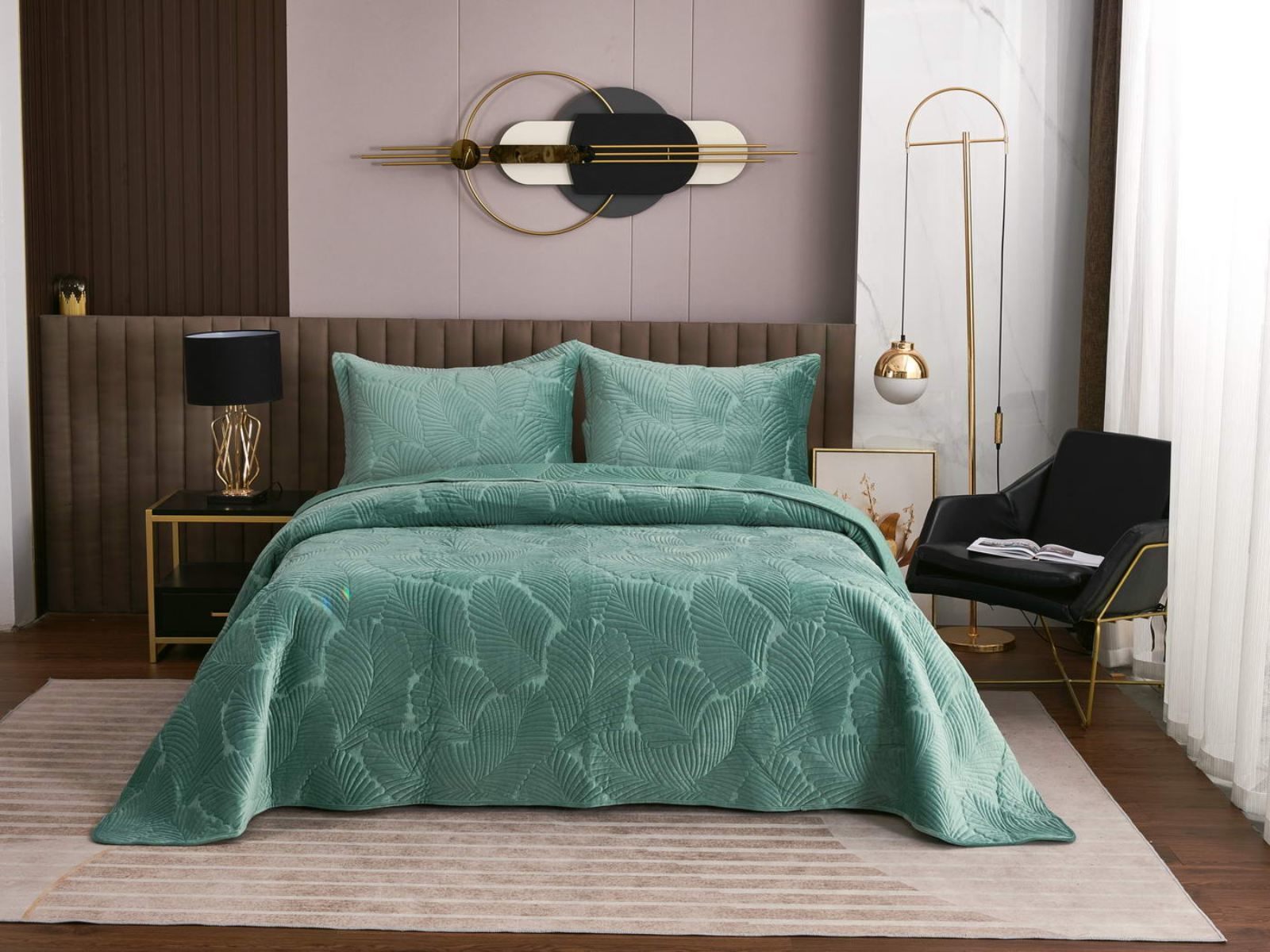 На создание велюрового покрывала Ноэль наших дизайнеров вдохновила ночь в середине лета, когда на раскаленную от жары землю спускается долгожданная прохлада. Роскошная вышивка в виде пальмовых листьев будет напоминать о тени, которую отбрасывают деревья.