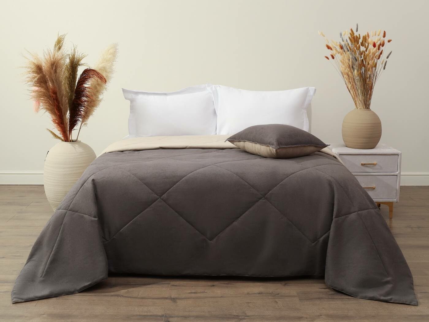 Превратите свой дом в пространство роскоши и комфорта Откройте дверь в мир премиального уюта Представьте себе момент, когда вы касаетесь ткани, которая словно создана для ваших рук. Коллекция «Нолан» – это именно та роскошь, которую вы заслуживаете. Каждое изделие – это произведение искусства, где безупречное качество встречается с доступной ценой. Магия бархатного прикосновения. Бархатистый канвас – это не просто ткань, это ваша новая страсть. Его изысканная текстура создает неповторимую атмосферу уюта, а премиальное качество 100% вискозы делает каждое прикосновение особенным. Инновации, которые меняют правила игры. Двусторонняя конструкция – это революция в мире домашнего текстиля. Теперь вы можете менять облик вашей спальни или гостиной, не тратя лишних средств. Два дизайна в одном изделии – это свобода выбора каждый день! Универсальная стежка «крупный ромб» станет идеальным компаньоном для любого интерьера. Классический дизайн, который никогда не выйдет из моды, подчеркнет ваш безупречный вкус