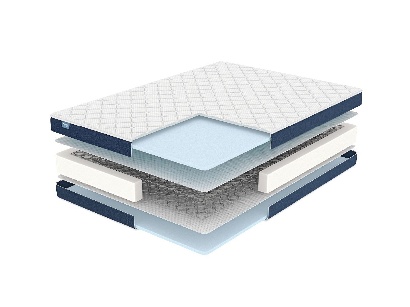 На матрас шьётся несъёмный жаккардовый чехол с содержанием хлопка. Для дополнительного комфорта спящего его простёгивают на ППУ. Бурлет изготавливается из прочной и красивой рогожки тёмно-синего оттенка.