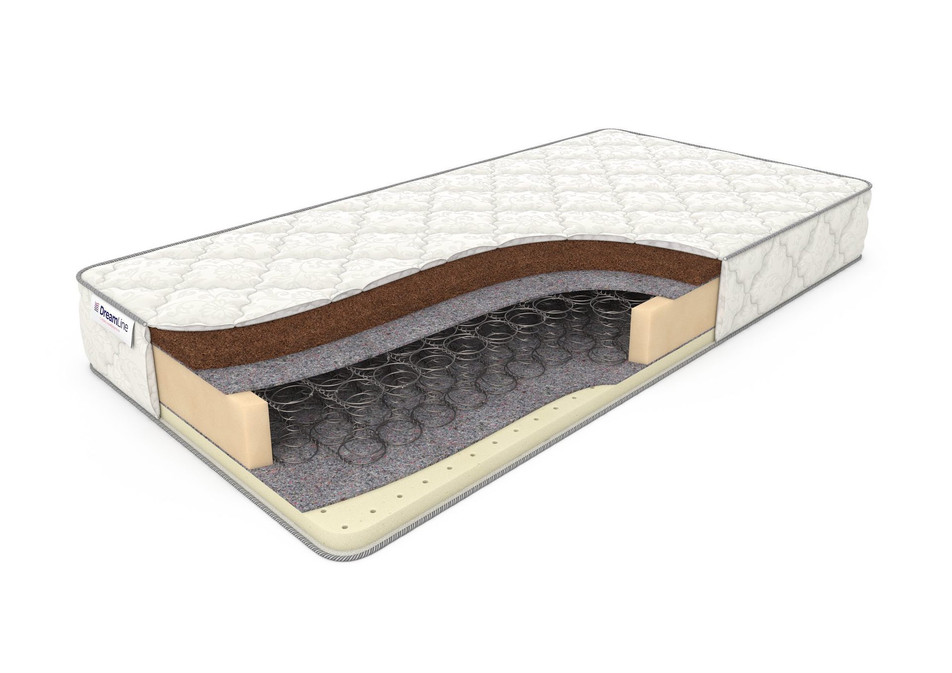 Матрас SleepDream BS относится к классу двухсторонних, то есть обладает двумя разными степенями жесткости. Это возможно благодаря тому, что с каждой стороны матраса расположены разные материалы наполнения. Одна сторона, благодаря слою натурального латекса, имеет среднюю жесткость и хорошую анатомичность, то есть способна принимать форму тела спящего. Другая сторона - жесткая и упругая, благодаря слою кокосовой койры, которая обеспечивает хорошие ортопедические свойства. В основе модели SleepDream BS - классический блок зависимых пружин Bonnel. Самый верхний слой матраса - чехол - выполнен из хлопкового жаккарда, простеганного на антиаллергенном холконе 200 гр./м2. В него может быть бесплатно вшита смотровая молния. Матрас имеет высоту 20 см и подходит для людей весом до 110 кг.