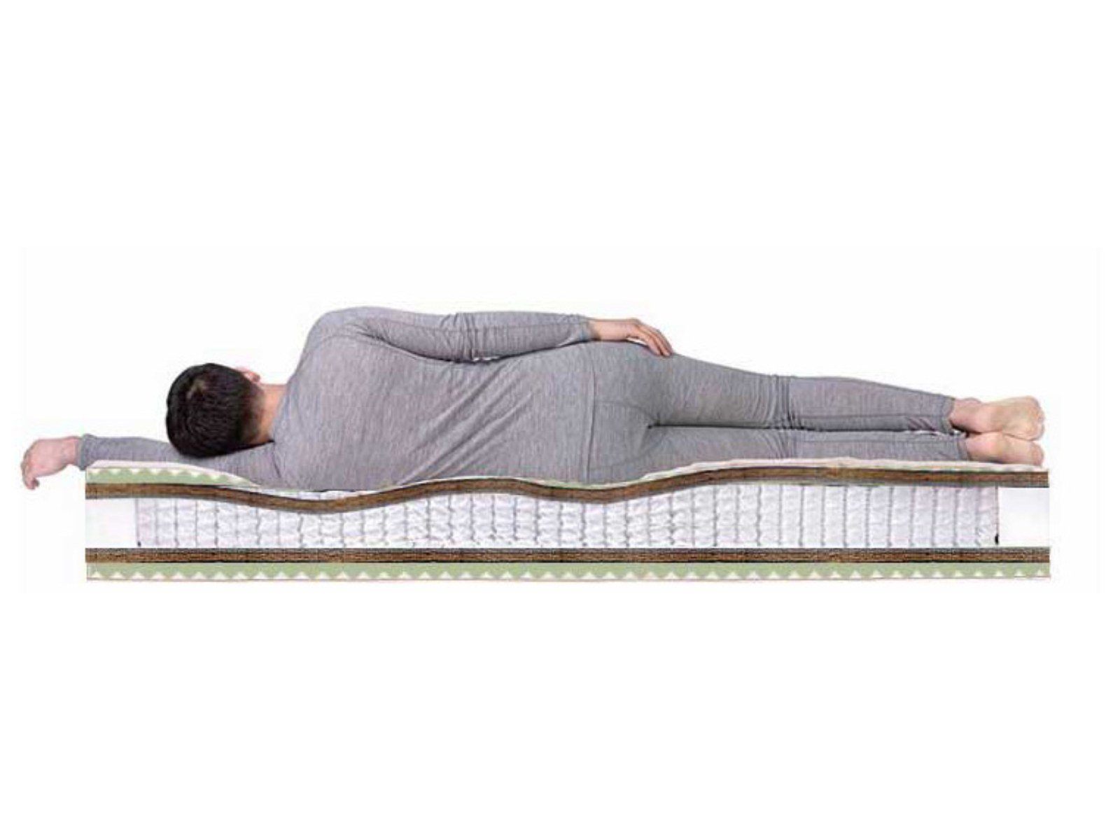 В основе матраса Space Massage S1000 лежит пружинный блок "Мультипакет", содержащий 530 независимых пружин на квадратный метр, который точечно реагирует на нагрузку, равномерно распределяя ее по всей поверхности и отлично справляется с ортопедической поддержкой позвоночника. По обеим сторонам от блока расположены слои бикокоса (прочного материала на основе кокосового волокна), которые служат для выравнивания поверхности и придания изделию общей средней жесткости. Внешние комфортные слои с обеих сторон сделаны из рельефной высокоэластичной пены Ergo Foam, оказывающей легкий массажный эффект, способствующий полному расслаблению во время отдыха. Общая высота модели Space Massage S1000 составляет 24 см, а максимальная нагрузка на одно спальное место - 140 кг. Дополнительный комфорт матрасу придает мягкий жаккардовый чехол.