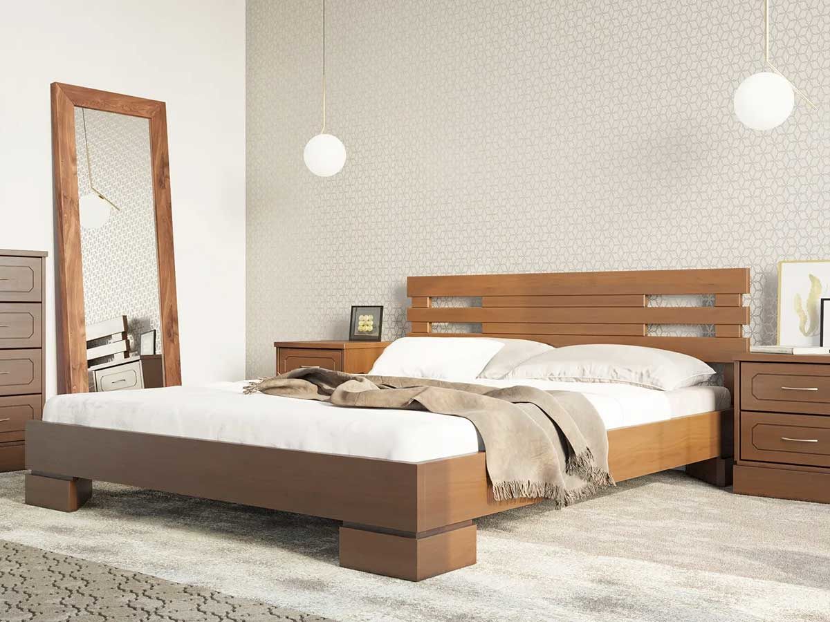 Кровать Варна 1 из массива ясеня изготавливается с изголовьем в стиле модерн.